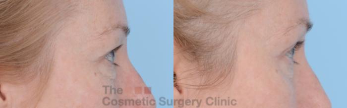 This 49-year-old woman was unhappy with the way the excess skin of her upper eyelids was drooping and creating a heavy appearance.