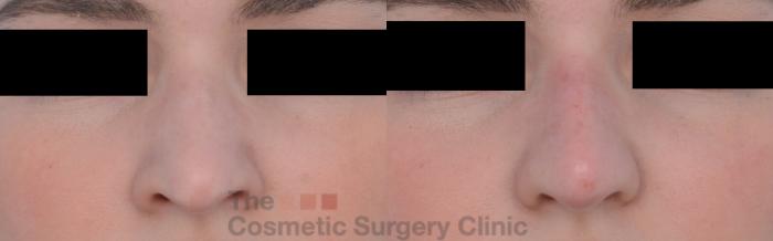 She underwent Juvederm filler treatments both to the dorsum of her nose as well as to the tip of the nose to give it a little more lift in her profile. As you can see from the post-treatment photographs, her nasal profile is much straighter and more pleasing, and she is very happy with a slimmer front view.